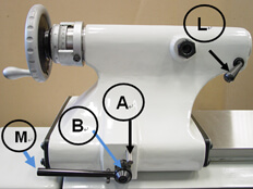 快速變換齒輪箱請見圖片12&14, T把手為自動進給或車牙的變換,換左邊是車牙而右邊為進給。牙的間距表在圖13-C。拉出手桿A去變換,左右移動到正確的位置之後改變選擇器S(圖13)到1、2或3直到想要的車牙位置(圖13)。一般車牙及螺旋車牙都可以直接在齒輪箱外面的把手做變換,牙的螺紋可以切至一英吋有250牙。